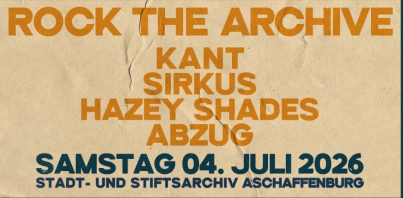 | Nach dem großen Erfolg im Jahr 2025, geht Rock the Archive im Rahmen der Aschaffenburger Kulturtage dieses Jahr in die zweite Runde! Kuratiert und zusammengestellt von über die Stadtgrenzen hinaus bekannten DJ, Plattensammler und Plattenladenbetreiber Demian Sky, bringt uns die Veranstaltung erneut eine Zusammenstellung etablierter und neuer – immer aber besonderer regionaler Acts auf die Bühne des Schönborner Hofs.Einlass ist um 17 Uhr, Beginn um 18 Uhr, Ende circa 22.30 Uhr. Für Speisen und Getränke ist gesorgt.Ab Mai 2026: Start des Vorverkaufs! Beteiligte Bands: Kant Kant ist eine Heavy-Psychedelic-Band aus der Underground-Musikszene in Aschaffenburg. Die 2020 gegründete Band hat sich schnell als eine feste Größe in diesem Genre etabliert und ist bekannt für ihre intensiven Live-Auftritte und atemberaubenden Klanglandschaften. Inspiriert von der psychedelischen Rock-Szene der späten 60er und 70er Jahre sowie dem Heavy Metal und Doom der 80er und 90er Jahre, kreieren die Musiker von Kant einen einzigartigen Sound, der verzerrte Gitarren, hämmernde Drums und wirbelnde Melodien mit eindringlichen Vocals und experimentellen Klängen kombiniert. Sirkus SIRKUS ist acid! Die Mischung von Kraut, Punk und Psych ist der Sound der Aschaffenburger und Frankfurter Gruppe. SIRKUS erzählt von der Schönheit, der Schrecklichkeit und der Hoffnung auf das Bessere. Seit der Gründung führten verschiedene Reisen in den nahen Osten, den Kongo, nach Burkina Faso und an die Amerikanische Westküste. Spuren dieser musikalischen Epizentren finden sich in ihrer Musik wieder. SIRKUS vermengt Weltmusik mit Elektronik, Synth und Fuzz Rock. Es entsteht eine radikal rollende, aber immer auch zerbrechliche Klangwelt. Hazey Shades Im Jahr 2015 als Instrumental-Trio gegründet, erspielten sich die HAZEY SHADES mit einem bunten Kaleidoskop aus Blues, Krautrock und psychedelischen Jams sowie exotischen Coverversionen und Mash-Ups schnell eine treue Anhängerschaft. Mittlerweile ist die Band zu einem Quintett herangewachsen und hat von „instrumental“ zu „Gesang“ gewechselt, wodurch sie ihren klanglichen Horizont erheblich erweiterte. Mit Hauptsitz im Wolkenkuckucksheim und Köpfen voller Ideen geht die Reise weiter – auf der Suche nach unerforschtem Terrain in den Grenzgebieten des Pop. Abzug Die drei Jungspunde aus dem Großraum Aschaffenburg formten nach einigen Monaten des gemeinsamen Musizierens die Krautrock-Band Abzug. Mit rhythmischer Gitarre, fingergepickten Basslines, motorischen Beats und choralem Gesang erschaffen die Jungs eine innovative Klangkulisse, die so in Aschaffenburg noch ungehört ist. Inspiriert von Kraut-Größen wie Neu!, Ash Ra Tempel und Virus ziehen die Jungs in die Welt, um ihrer Musik Gehör zu verschaffen. Webseite: Ticketlink: Bildtitel: Fotocredit: Datenschutzerklärung und Bedingungen wurden akzeptiert |