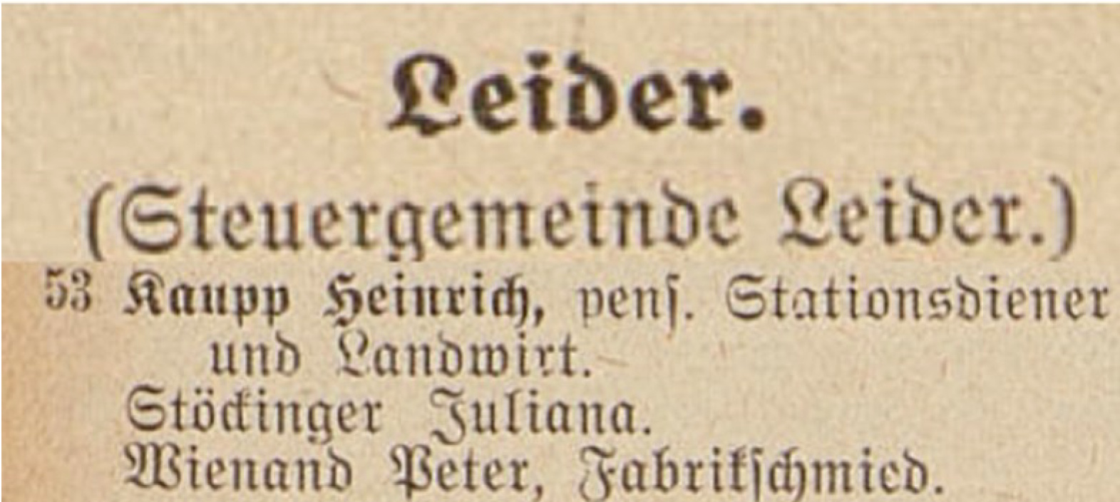 Ihren Wohnsitz hatte die Familie Kaup[1] im Anwesen Leider Nr. 53.[2]