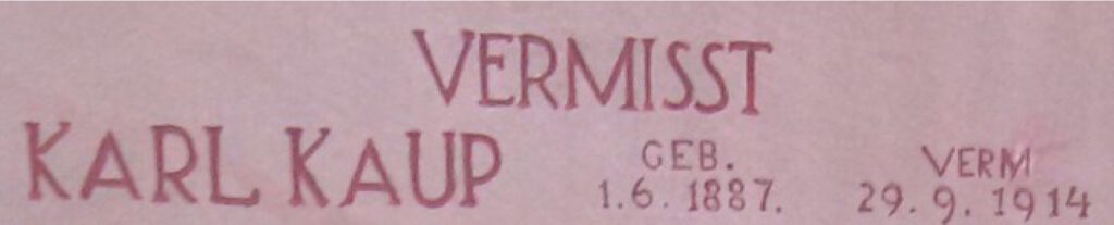 Karl Kaup (1.6.1887–29.9.1914) – 1. Kompanie/135. Preuß. Infanterie-Regiment – vermisst