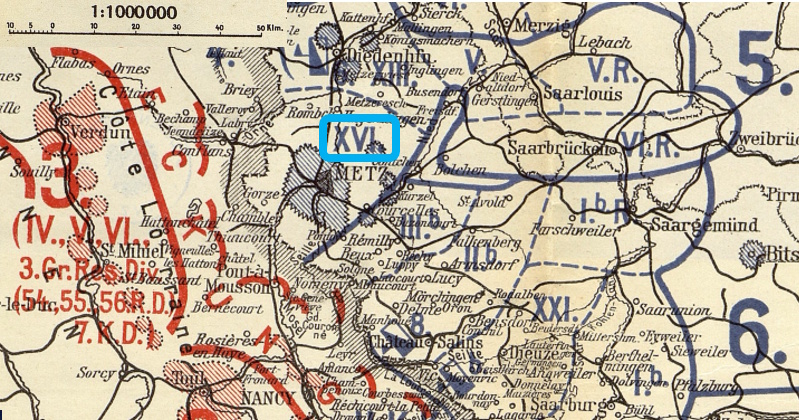 23.8.1914   Feindverfolgung über Xivry bis 2 km südöstlich Réchicourt; dort Bereit­schaftsstellung für 33. Inf.Div.