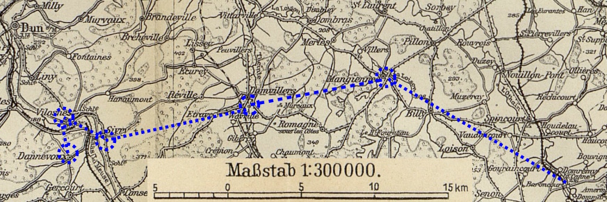 29.8.1914   Vormarsch gegen die Maas: Mangiennes – Damvillers – Sivry-sur-meuse
