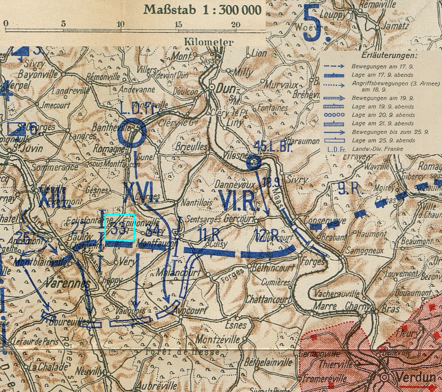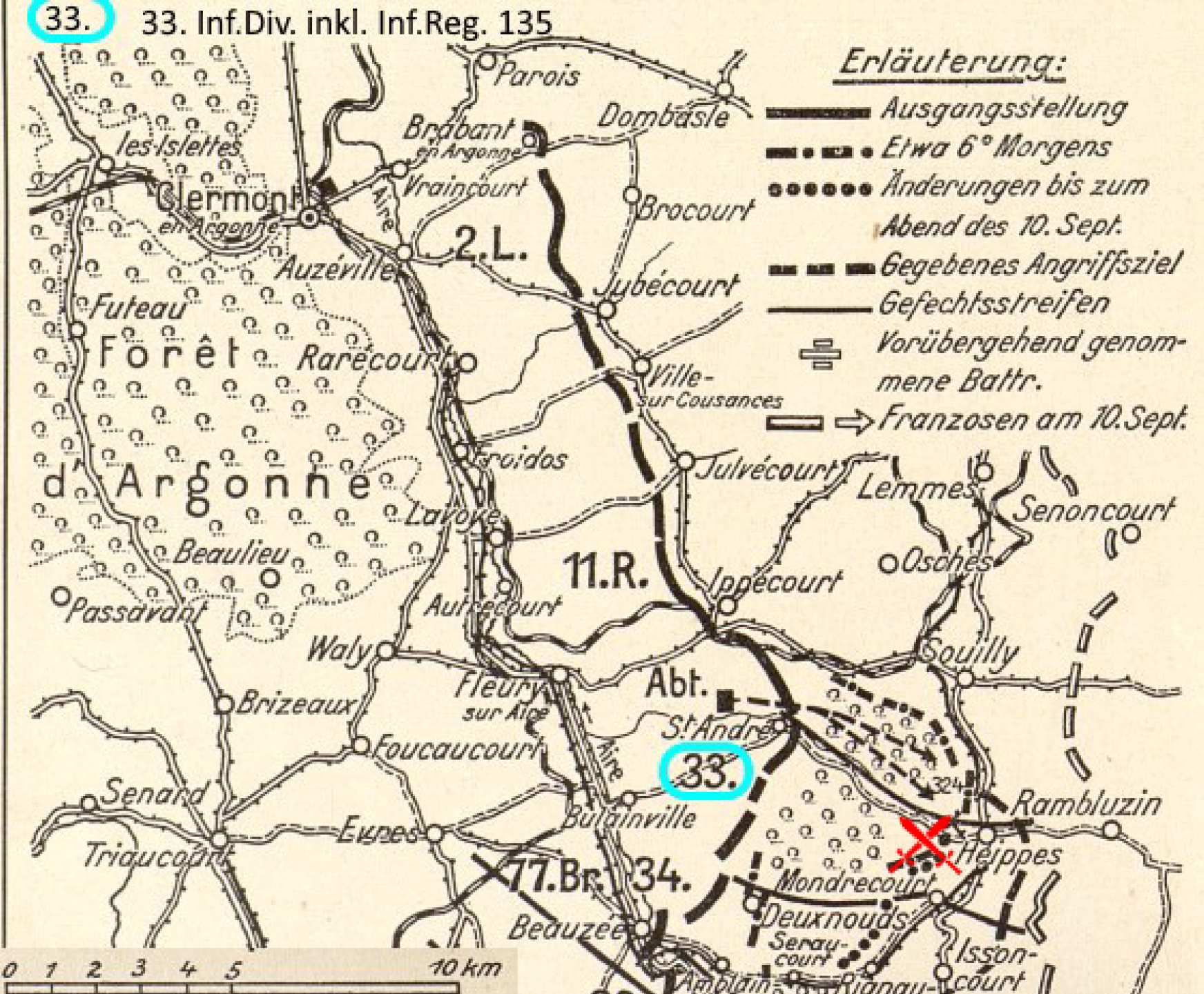 Karte 7: Die 33. Inf.Div. in der Schlacht um Varennes